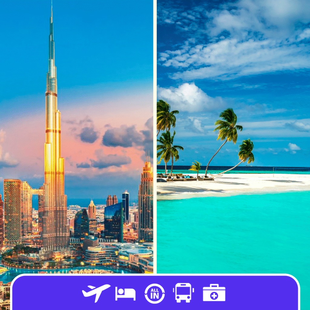 Combiná lo mejor de dos mundos en un viaje inolvidable: comenzá con el lujo vanguardista y la emoción de Dubái, explorando sus rascacielos imponentes y viviendo aventuras únicas como un safari en el desierto, para luego desconectar en el paraíso de Maldivas, disfrutando de sus idílicas playas de arena blanca, aguas turquesas y el máximo relax en un resort sobre el agua.