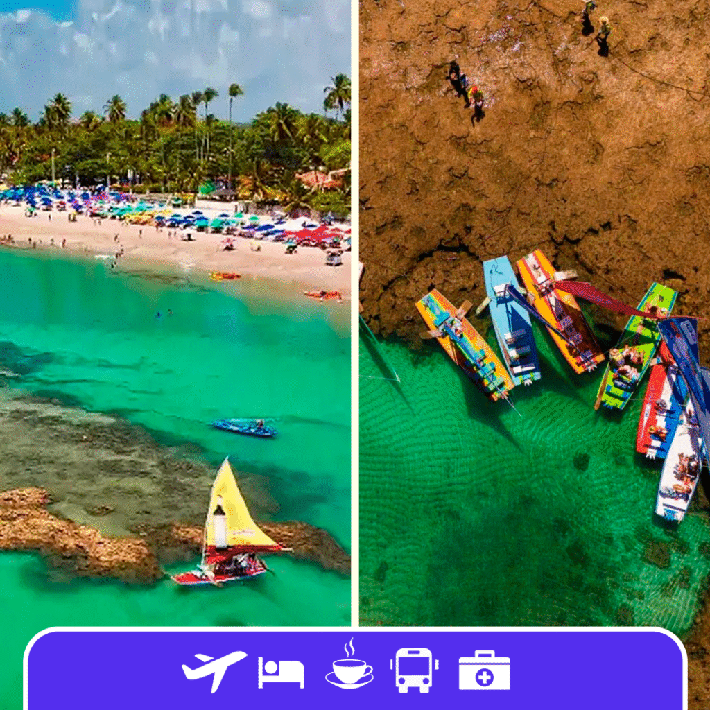 Porto de Galinhas, uno de los destinos de playa más codiciados de Brasil. Ubicado en el estado de Pernambuco, este rincón te enamorará con sus aguas cristalinas y cálidas, y sus famosas piscinas naturales formadas por arrecifes de coral.