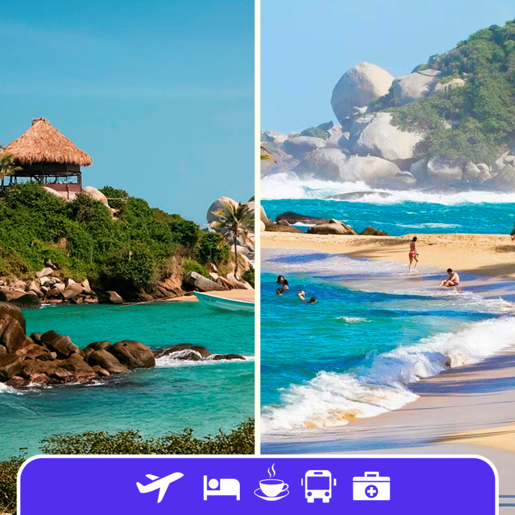 SANTA MARTA & PARQUE TAYRONA Descubrí la selva virgen del Parque Tayrona y el encanto de Santa Marta. Viví una experiencia única entre la Sierra Nevada y el Mar Caribe.Aéreos + Traslados + Alojamiento + AsistenciaSalidas Marzo a Mayo✈ Aéreos 🏨05 noches con All Inclusive🏨02 noches con desayuno🚐Traslados 🚐 Tour nocturno en chiva🚐Aldea Taganga y Playa Grande💵 U$D 1.950 por persona en base doble💵 U$D 1.850 por persona en base triple